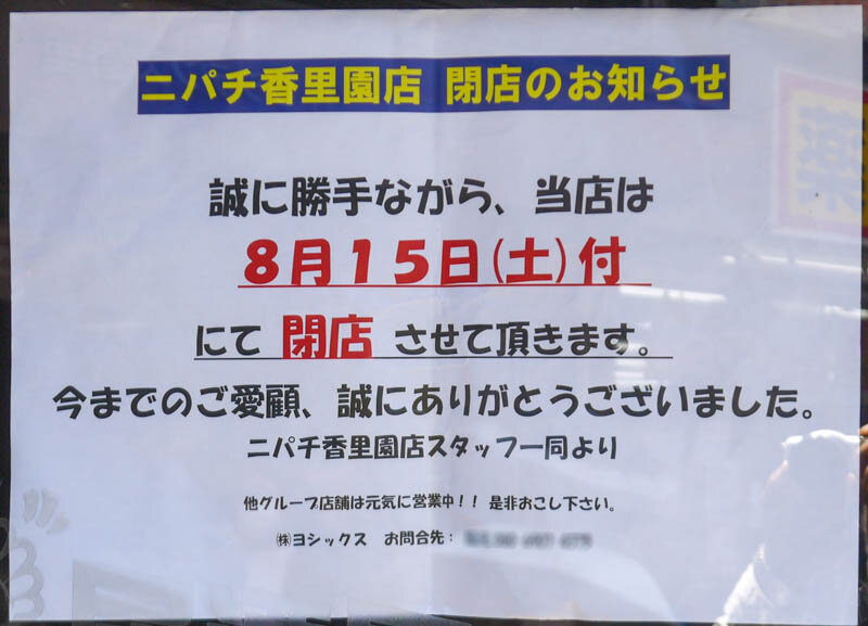 香里園の居酒屋「ニパチ 香里園店」が閉店しています。
