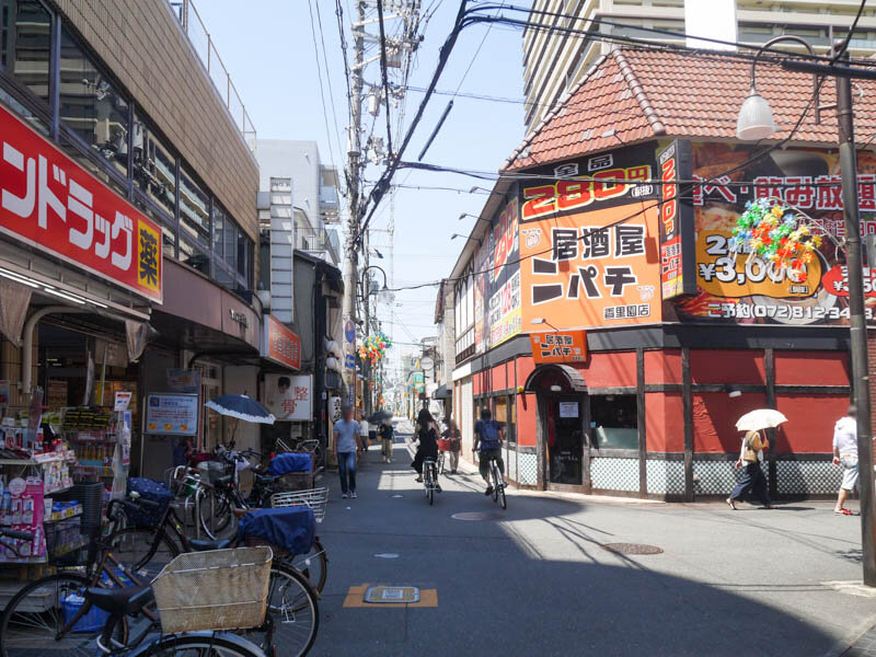 反対方向は香里園駅方面。進んで行くと、セブンイレブンや餃子の王将などがあります。