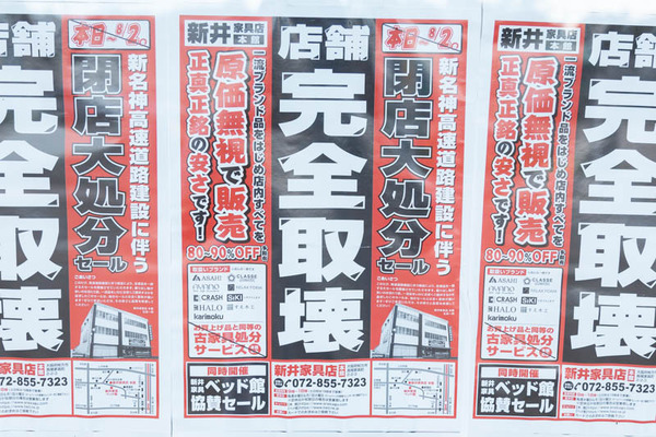 家具団地の「新井家具店 本館」が新名神高速道路工事による立ち退きのため9月30日で閉店するそうです。