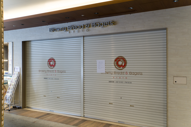 樟葉駅改札すぐそばにある「Browny Bread & Bagels(ブラウニーブレッドアンドベーグルズ)京阪くずは店」が閉店しています。