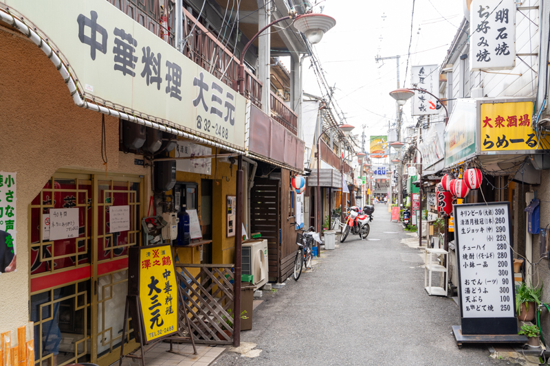 反対方向へ行くとうまいもん酒場 まっさんなどがあり、右に曲がるとTSUTAYAや香里園駅の方へ行きます。