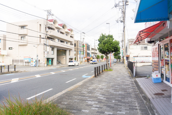 反対方向へ行くとダイソーやコノミヤなどの前を通って、くずはアベニューとの交差点「楠葉中央」へ。