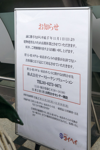 こちらにも11月1日より建物建替のため長期休業とのお知らせが。