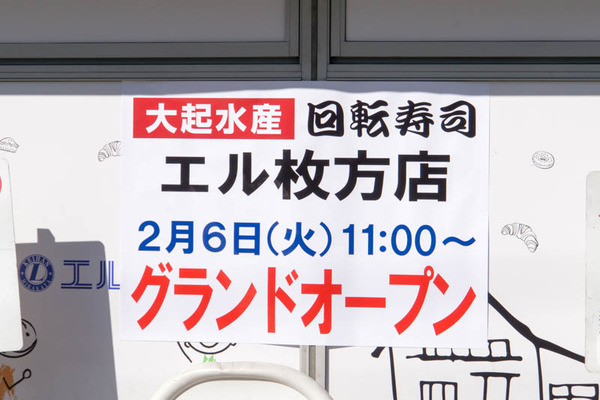 エル枚方に作っている回転寿司店「大起水産」のオープン日が決まったようです。