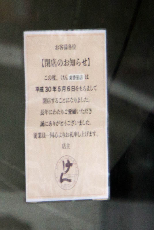このお店の閉店で、最寄りのステーキのけんの店舗は兵庫県加古川市の店舗となり、そこが近畿唯一の店舗となる模様。