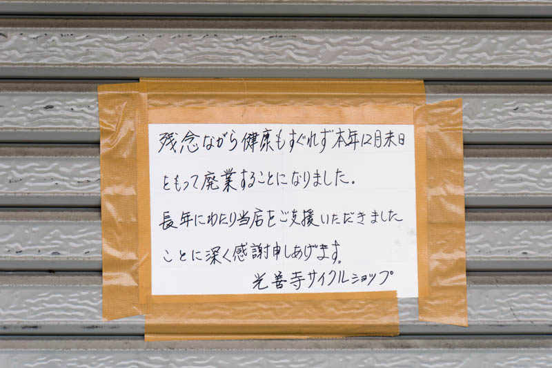光善寺駅前の「光善寺サイクルショップ」が廃業しています。