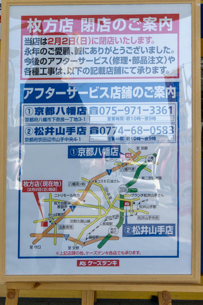 ここが閉店することで、枚方にある大型家電量販店はジョーシン、エディオン、ヤマダ電機の3店舗になります。