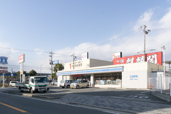去年の3月にオープンしたワンカル食堂の隣りで、家具団地の入口部分にあり、1号線からもアクセス可能なローソンです。