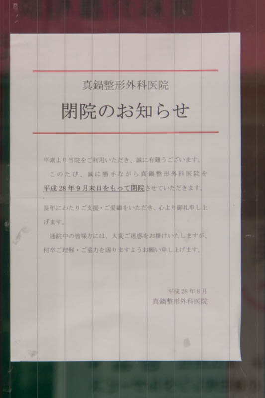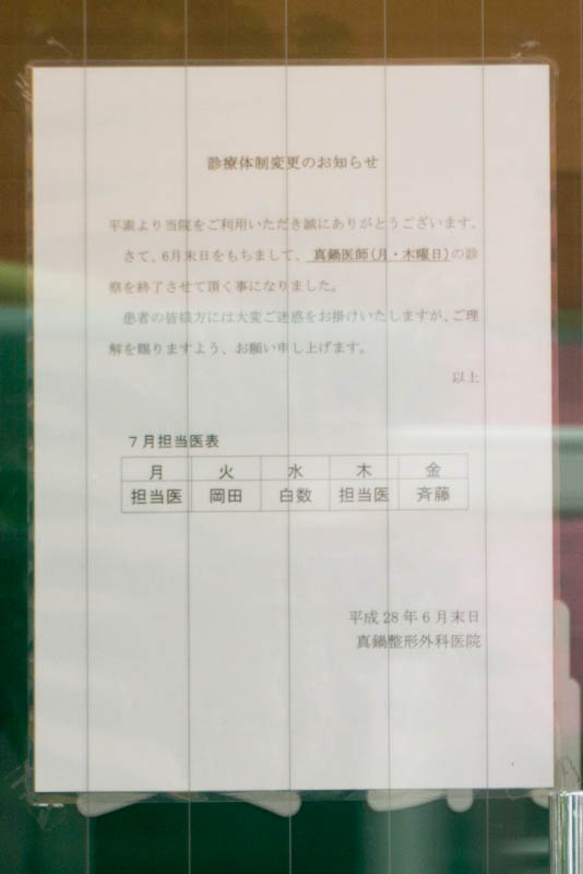 東船橋の「真鍋整形外科医院」が9月末で閉院するようです。