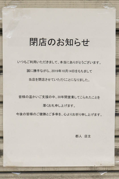 2013年に楠葉朝日の「京寿司 都人」と合併したこちらのお店、上記の貼紙によると10月14日に閉店したようです。