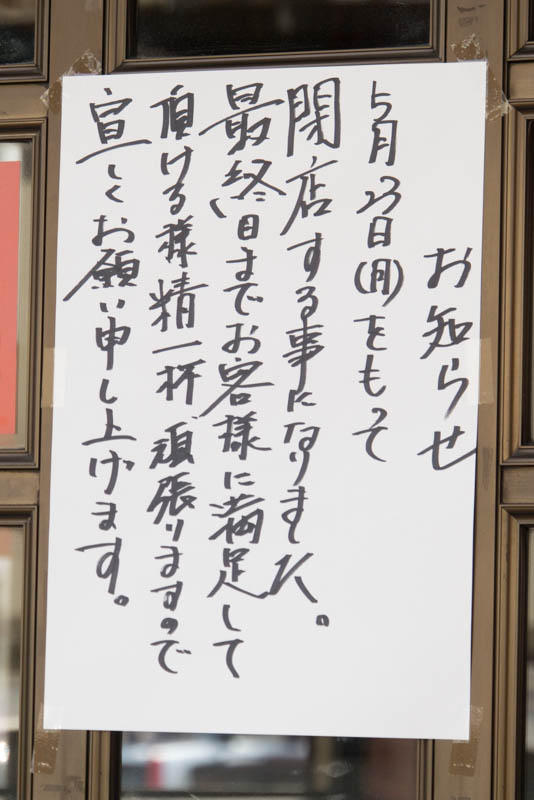 【追記】いただいた情報によると、店長さんは枚方大峰店を引き継がれるそうです!