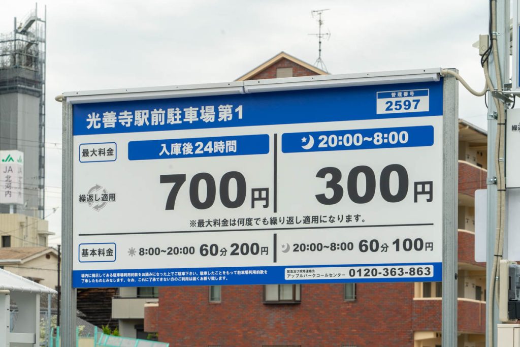 光善寺駅ちかくに「光善寺駅前駐車場第1」というコインパーキングができています。