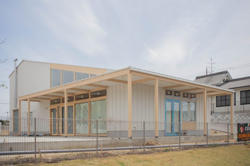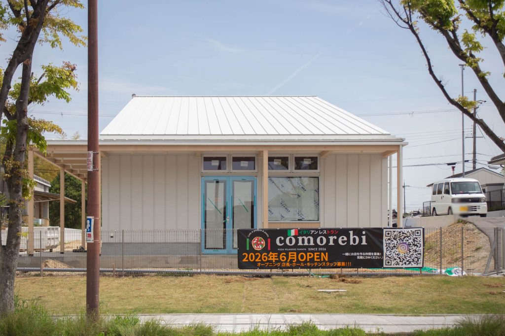 松井山手に作っているイタリアンレストラン「comorebi」の外観ができてきています。