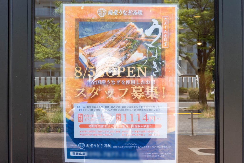 CONOBA香里ヶ丘に「国産うなぎ西政 香里ケ丘店」ができるようです。