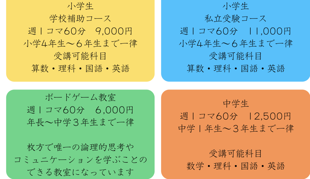 塾の公式サイトによると、受験に関するコースだけではなく、枚方で唯一の倫理的思考やコミュニケーションを学ぶことができる「ボードゲーム教室」もあるそう。