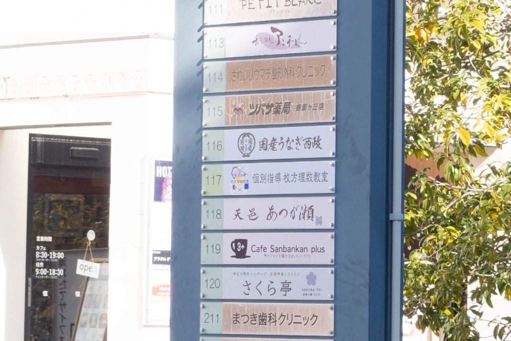 CONOBA香里ヶ丘に入っている店舗が書かれた案内を見てみると、117の場所に「個別指導 枚方理数教室」と書かれています。