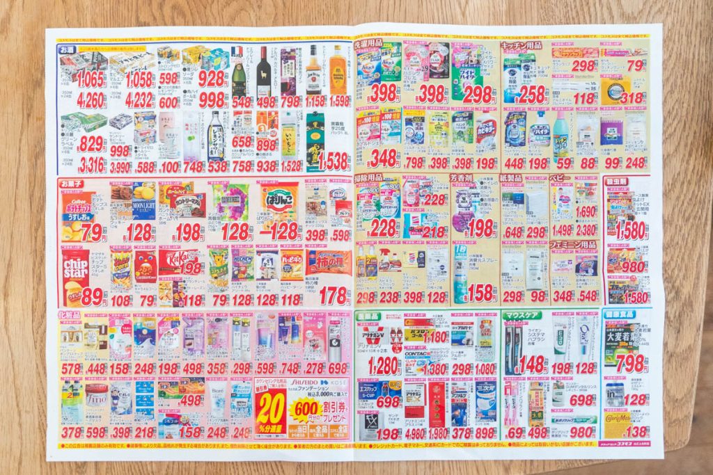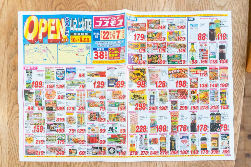 「ドラッグコスモス」は福岡に本社があるドラッグストア。(→公式サイト)現金会計のみですが、そのかわりリーズナブルというのが特徴的です。