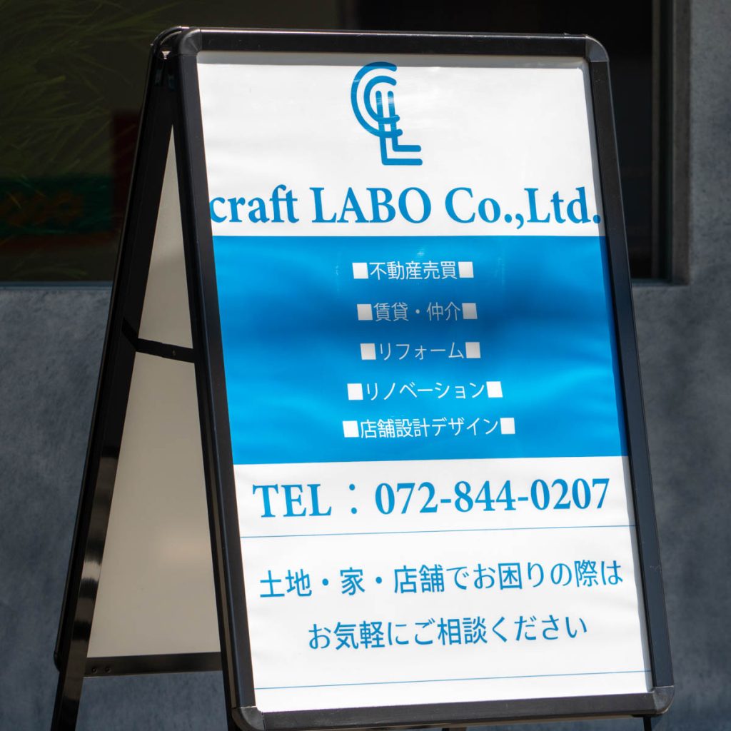 「craft LABO.(クラフトラボ)」は元々枚方市駅ちかくにあった不動産店。こちらに移転してきたかたちになります(→公式サイト)。