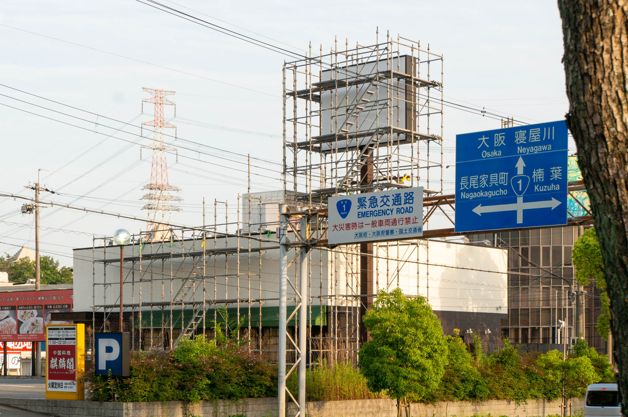 国道1号線沿い家具団地そばに作っている「クリーム本舗 枚方店」の外観ができています。