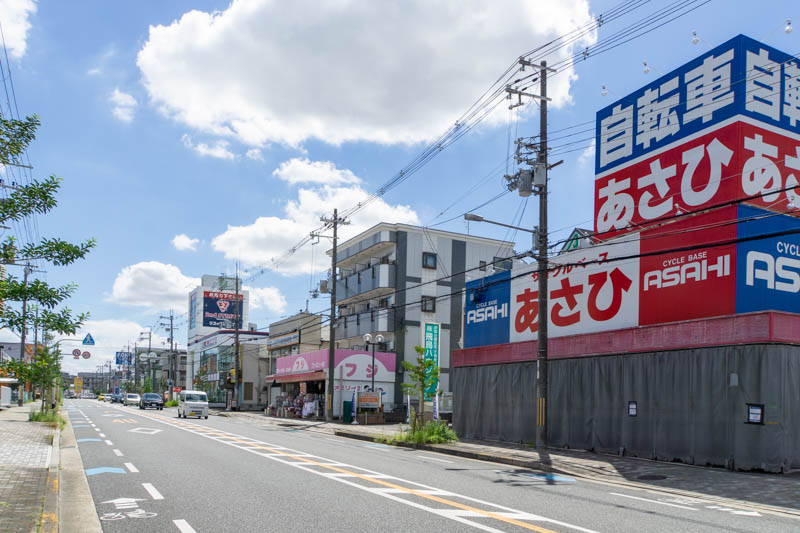 反対方向にはセカンドストリートがあり、進んでいくと古本市場などの前を通って招提の方へ。