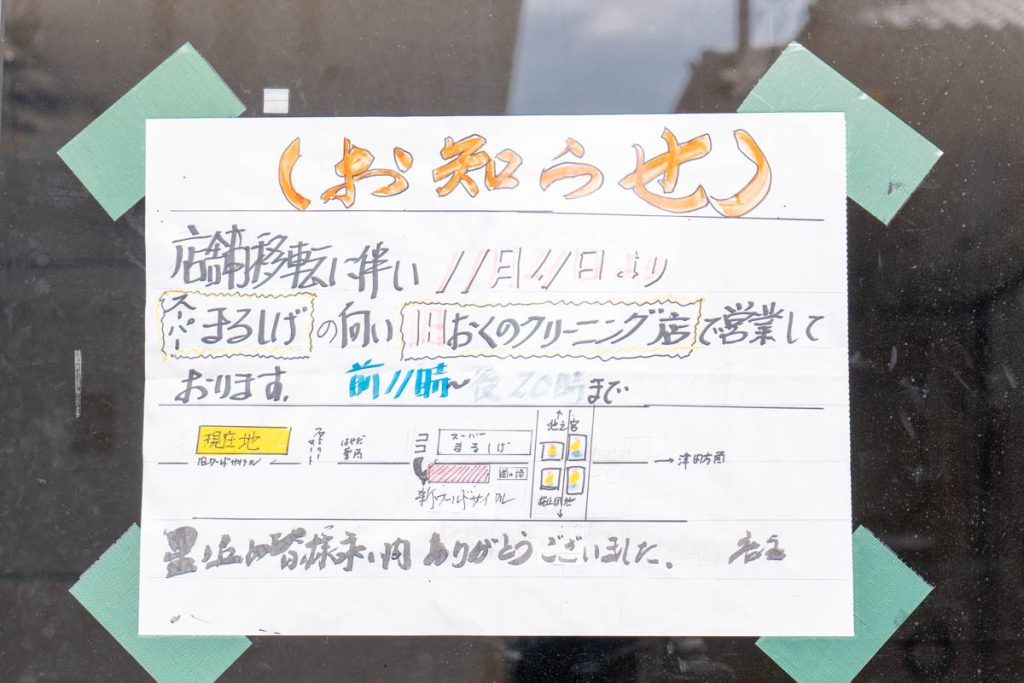 「スーパーまるしげ」の向かいにあるクリーニング店の跡地に移転しています。