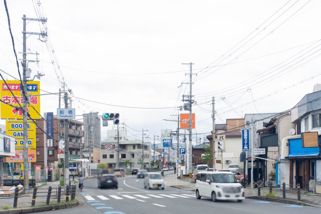 こっちにいくと、ローソンやスーパーナカガワなどがあります。樟葉駅方面です。