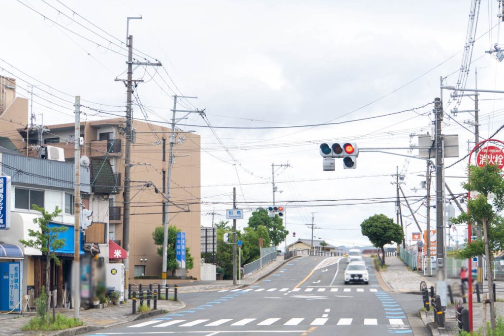 反対方向に行くとスシローや来来亭などが。映ってはいませんが、お店の向かいにはドミノ・ピザがあります。