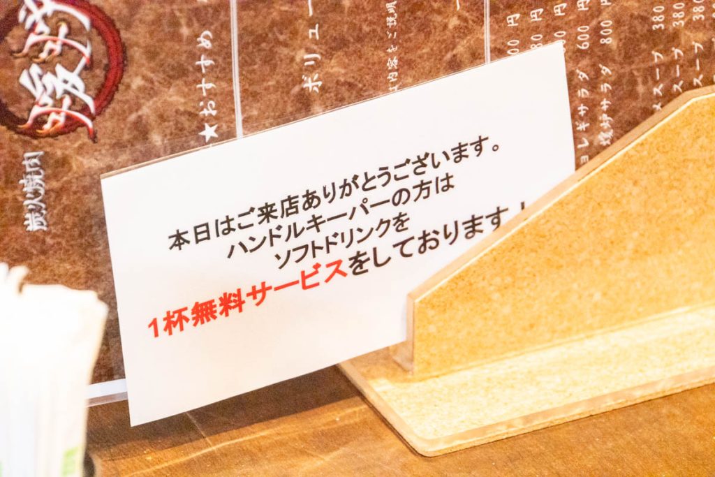 ハンドルキーパーの方はソフトドリンク1杯無料!これちょっと嬉しい。