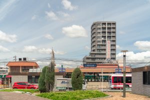 反対方向に行くと男山第二中学校があり、周辺には男山団地が広がります。