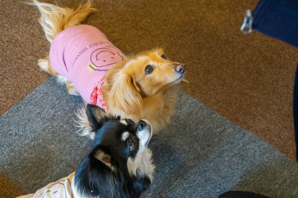 チワワのほうがモナちゃん、ダックスフンドのほうがキキちゃん。