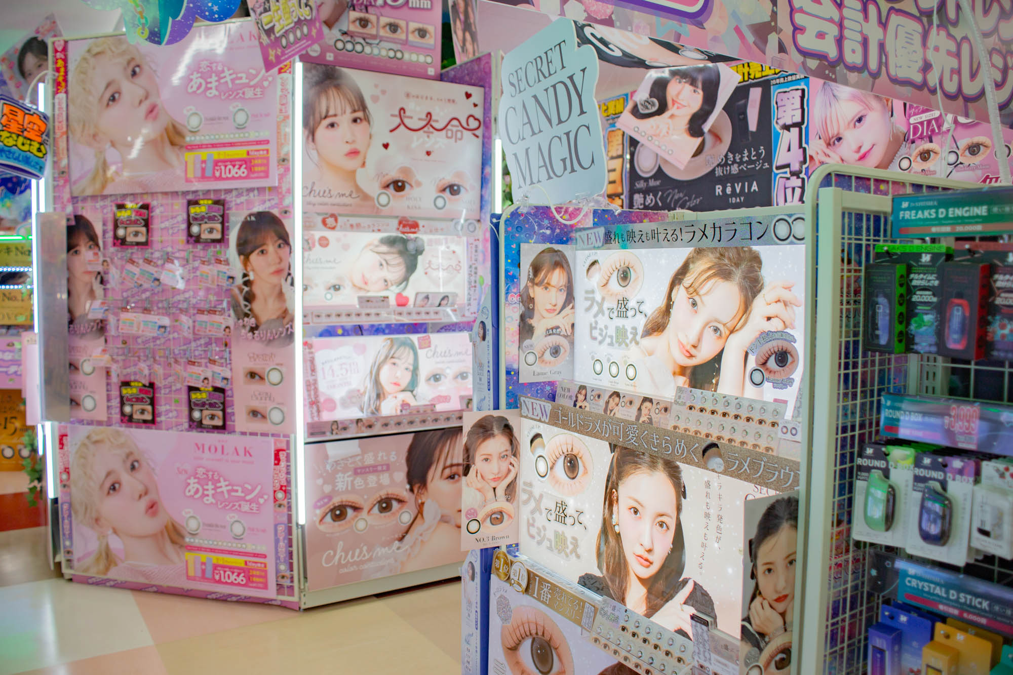 こちらもすんごい種類だったカラコンコーナー。