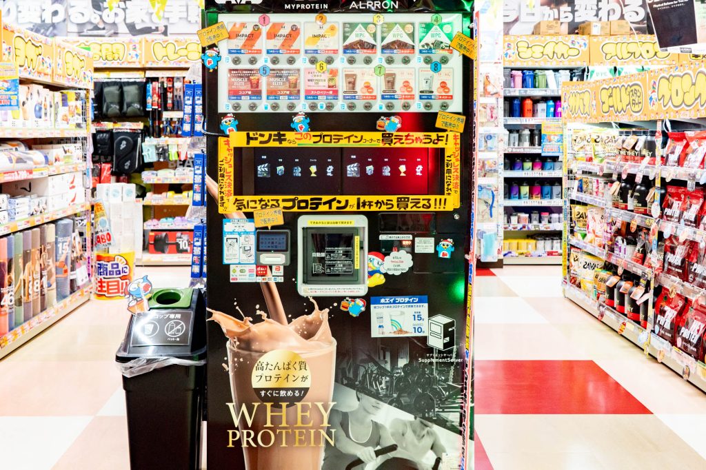 店内にはプロテインの自販機も!