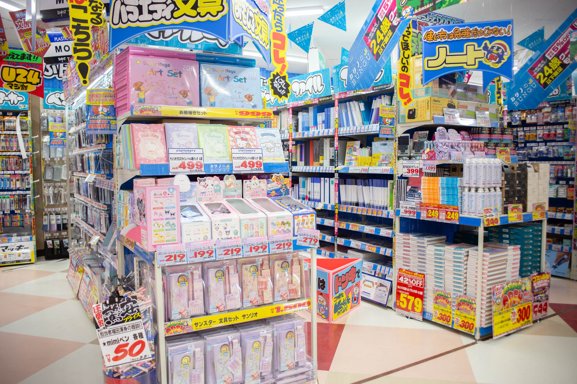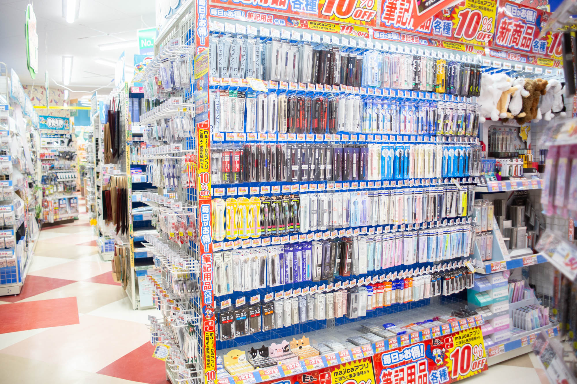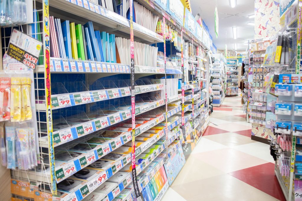 おもちゃに圧倒されたんですが文具もかなり揃っていて、ノートにペンに習字道具まで。