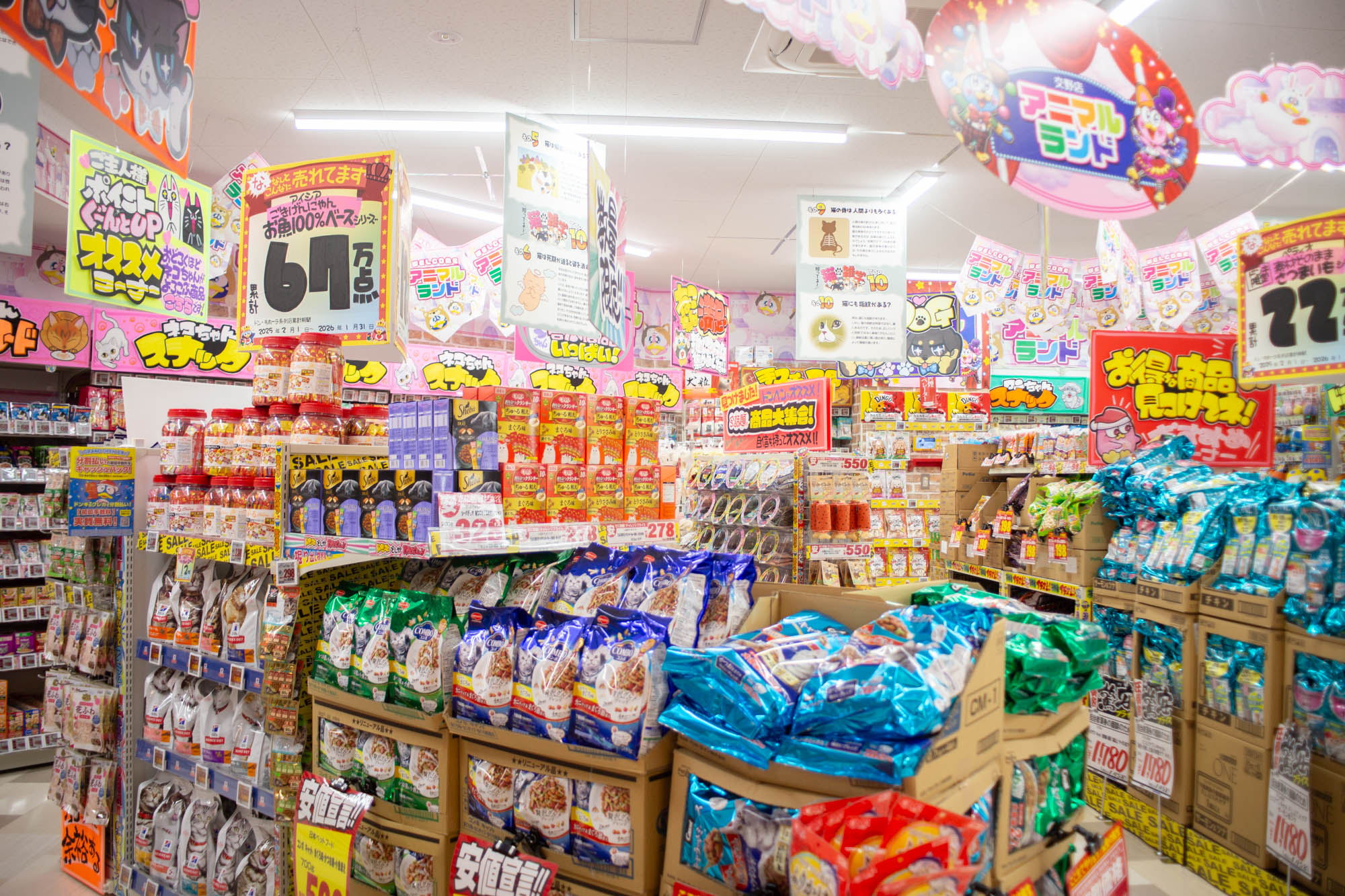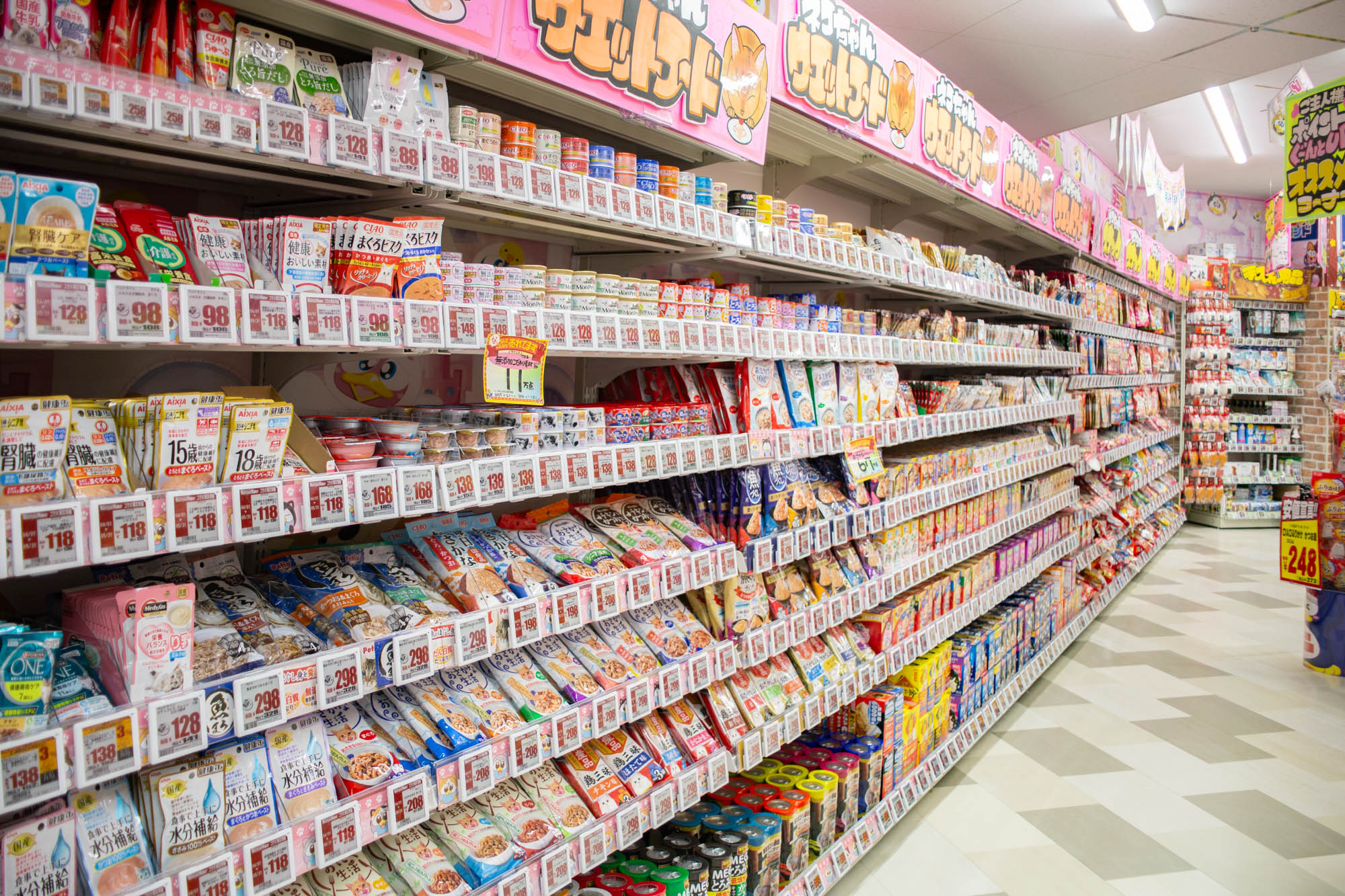 ペット用品のコーナーも壁沿いにずら〜とありまして、かなり豊富な品揃えでした!