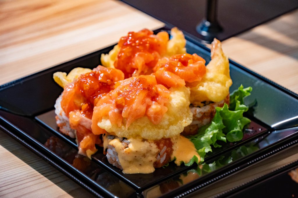 こちらも実際に頂いたんですが、ぶっかけスパイシーなのはピリ辛シラチャーソース部分で、サーモンだったり、海老天だったり、食べごたえも映え感もバッチリ!