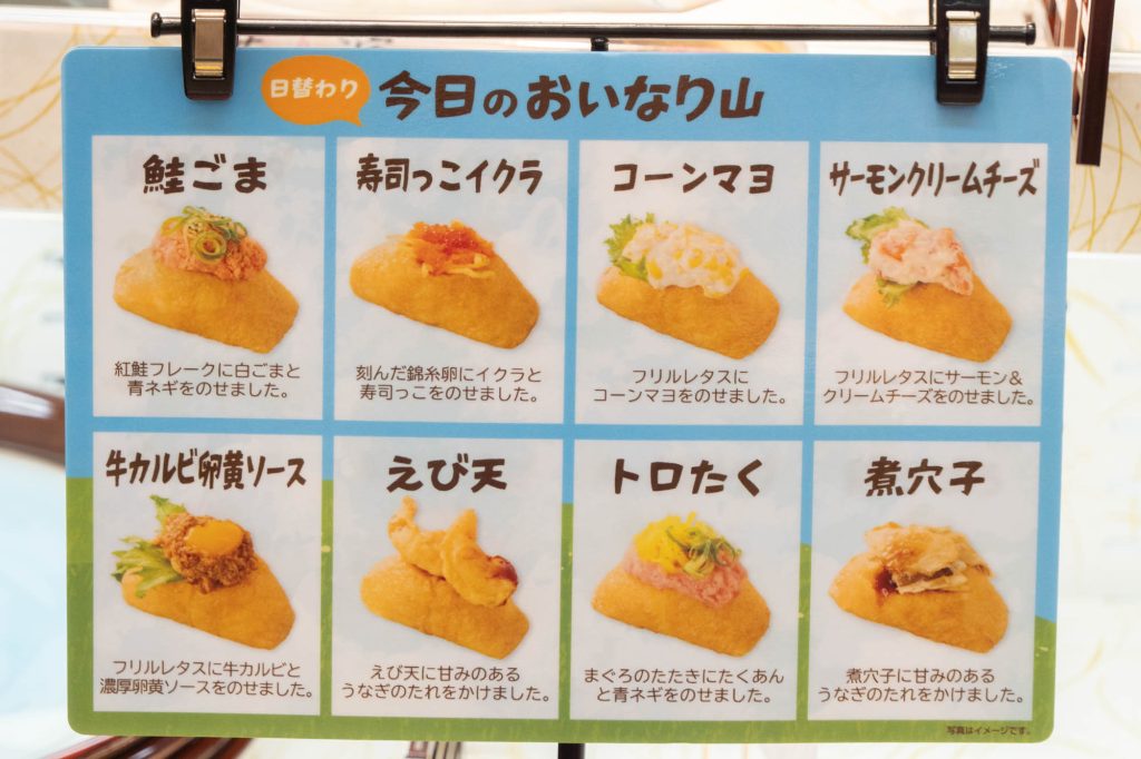 上記から好きなおいなりさんを自分で取るシステムです。おいなりさんは1個がかなり大きくって、見た目も華やかですし、手土産にもかなり良さそうでした!食べてみたいな〜!