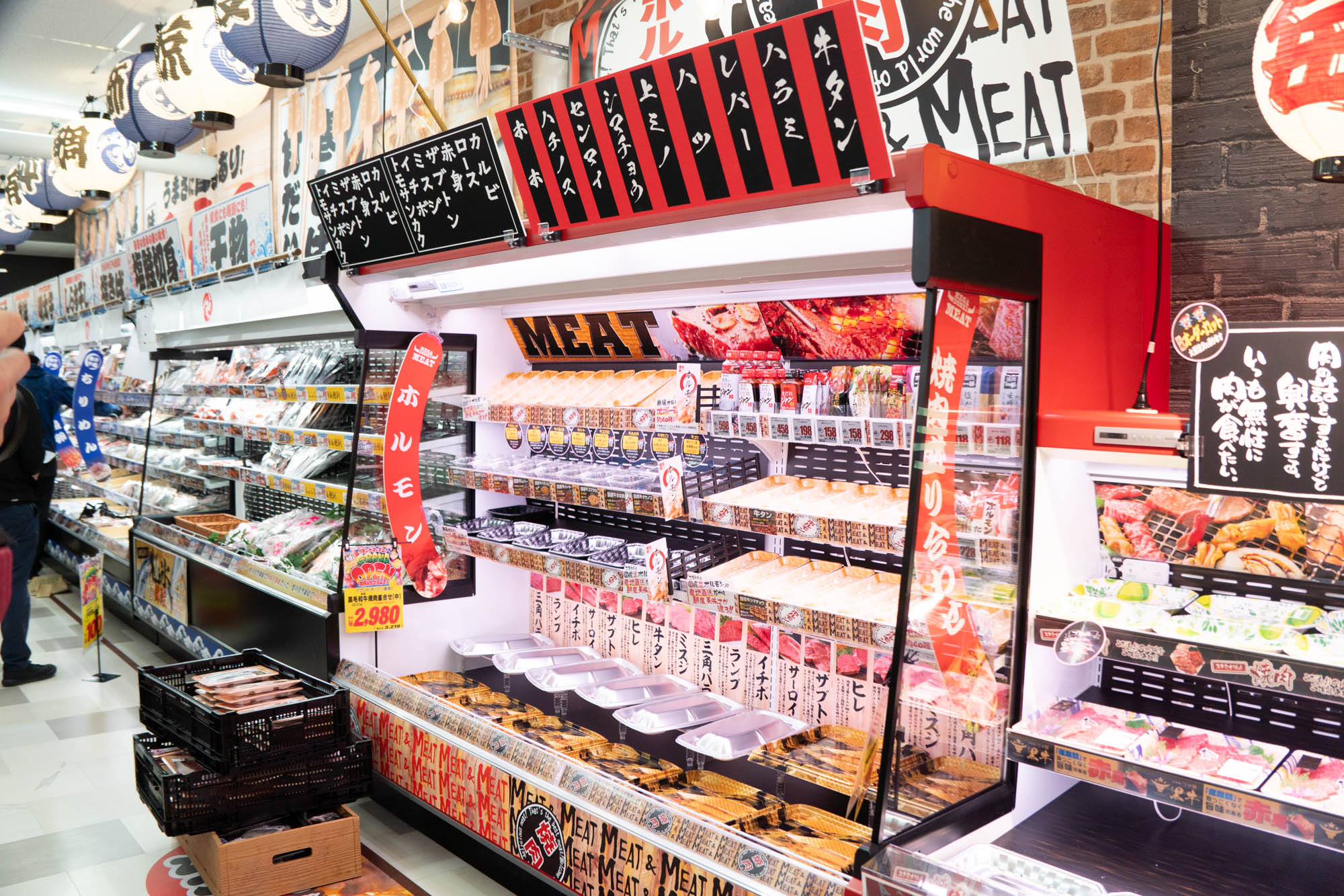 お家焼肉に良さそうなコーナーや加工品なども。精肉コーナーもけっこう広かったです!