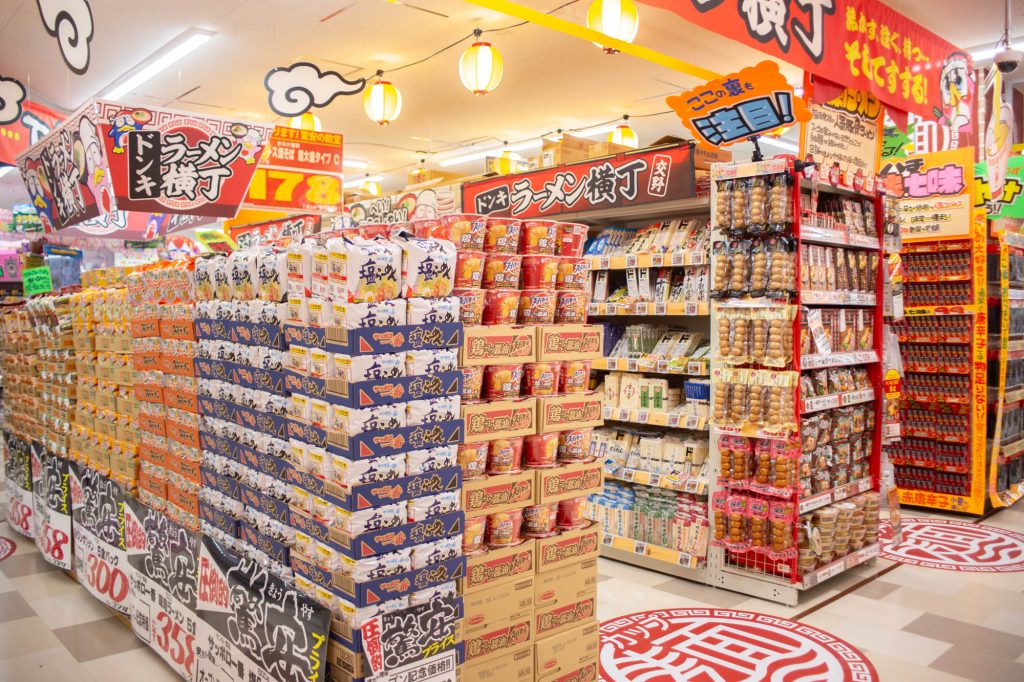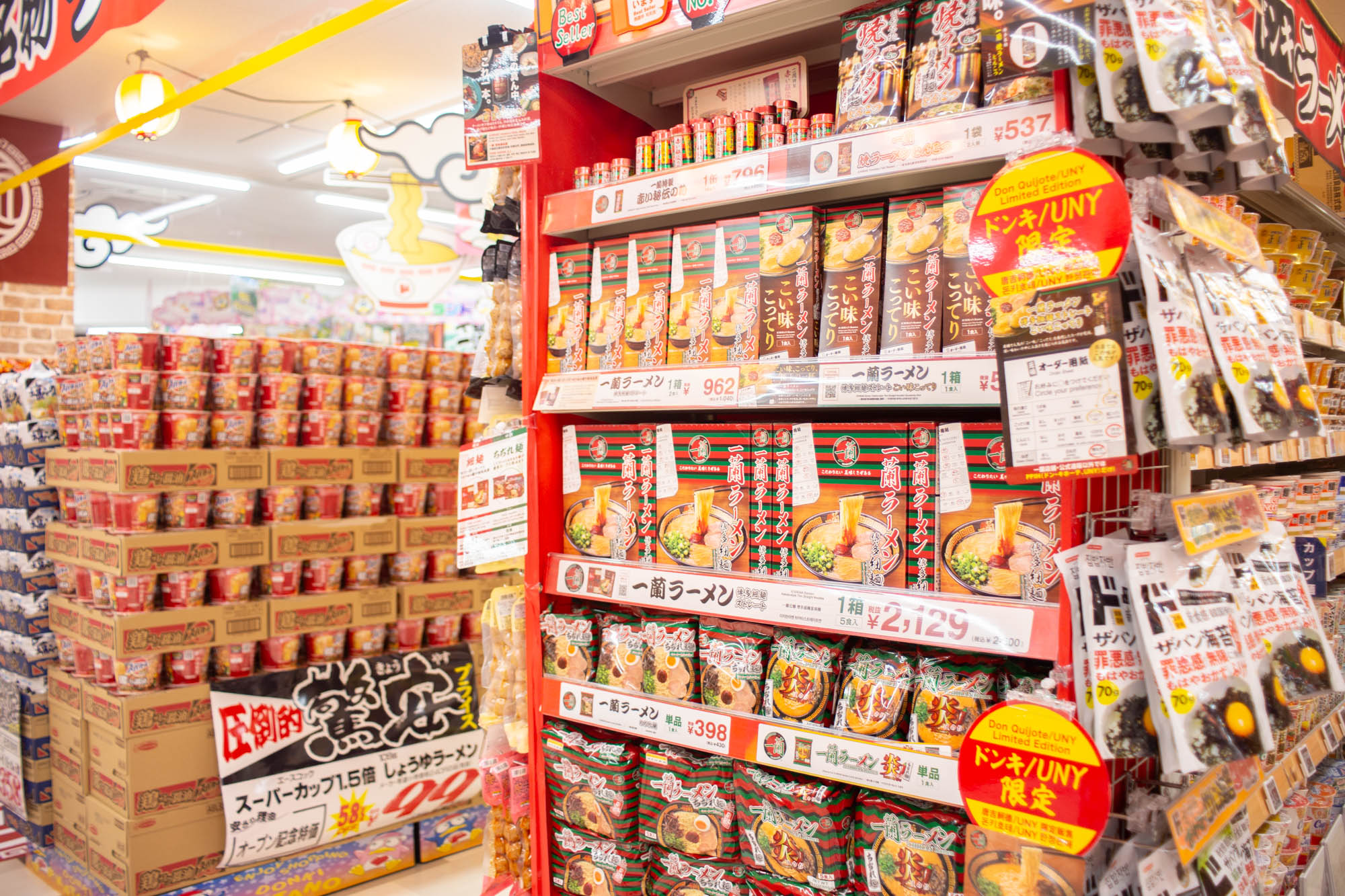 ラーメンもドドンとでっかくコーナーがありました。人気商品からこれまたレアなものまで。見飽きない!