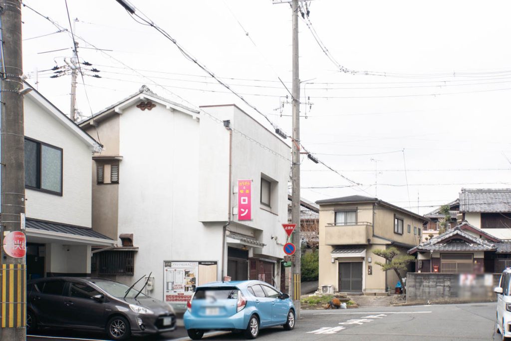こっちに行ってT字路を左に行くとCOFFEEサザンや有楽寿しなどがあります。右に行くと摂南大学。