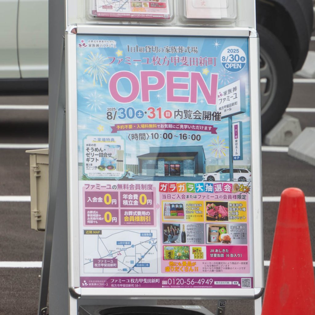 府道144号線沿い甲斐田東町に「家族葬のファミーユ 枚方甲斐田新町ホール」ができるようです。