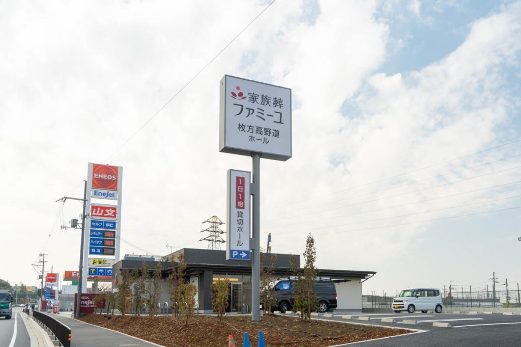 国道1号線沿い高野道に「家族葬のファミーユ 枚方高野道ホール」ができるようです。