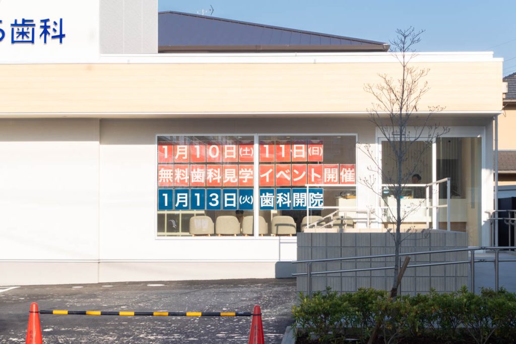 窓にあった貼紙によると、1月13日が開院日のよう。1月10日・11日は無料の見学イベントもあるそうです。