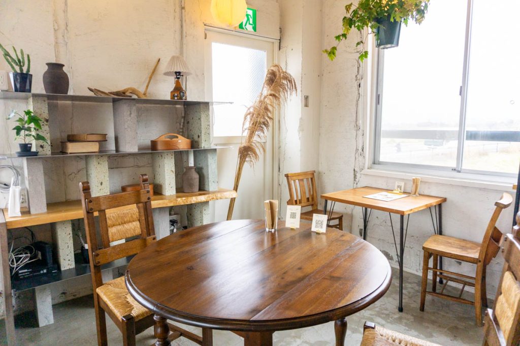 店内を見せてもらいました。窓向きで河川敷を見ながら食べられるカウンター席や、いろんなタイプのテーブル席もあって、1人でもグループでも利用しやすそう。