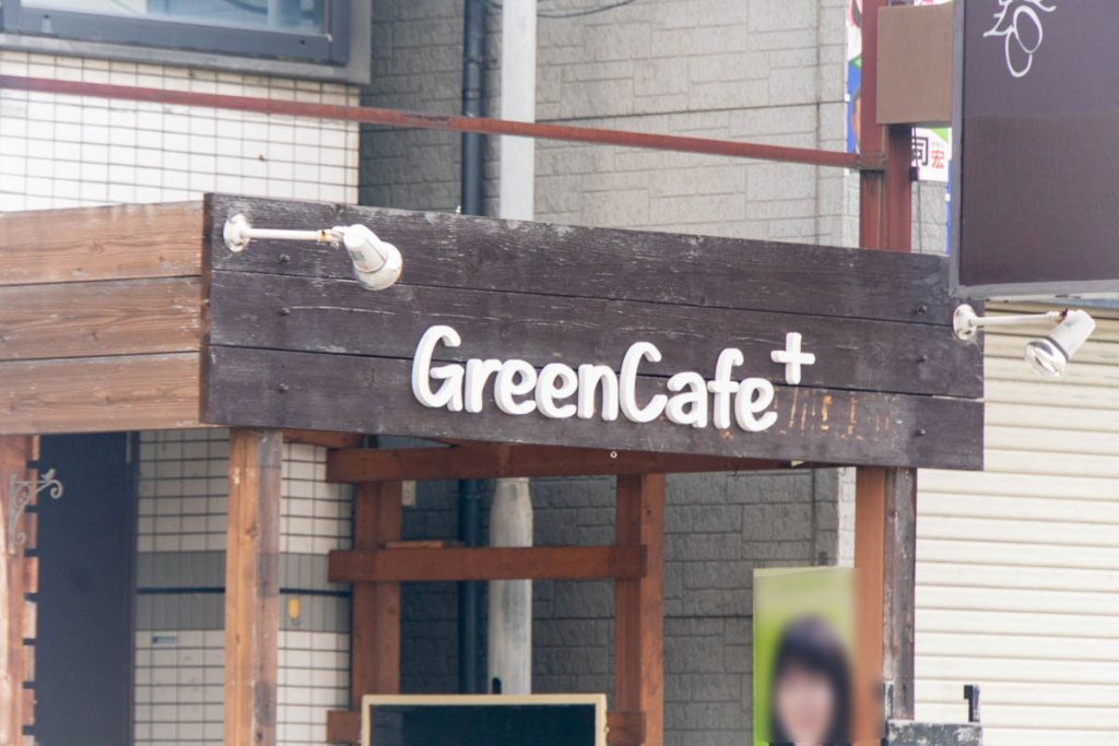 お店には看板が付けられていて「GreenCafe+」というカフェができそうな雰囲気でした。
