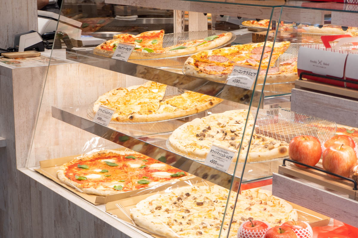 生・アップルパイなどのショーケースが増えたそうです。でっかいピザも!