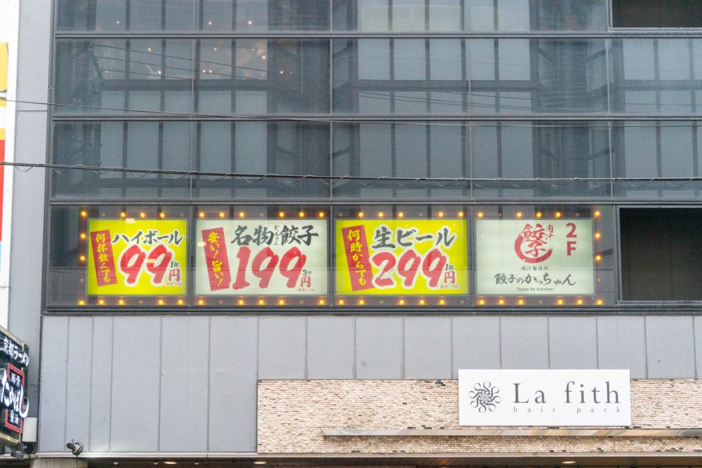 「餃子のかっちゃん」は大阪市のお初天神に本店があり、近畿を中心に愛知や福岡、宮城などにも出店している餃子居酒屋。