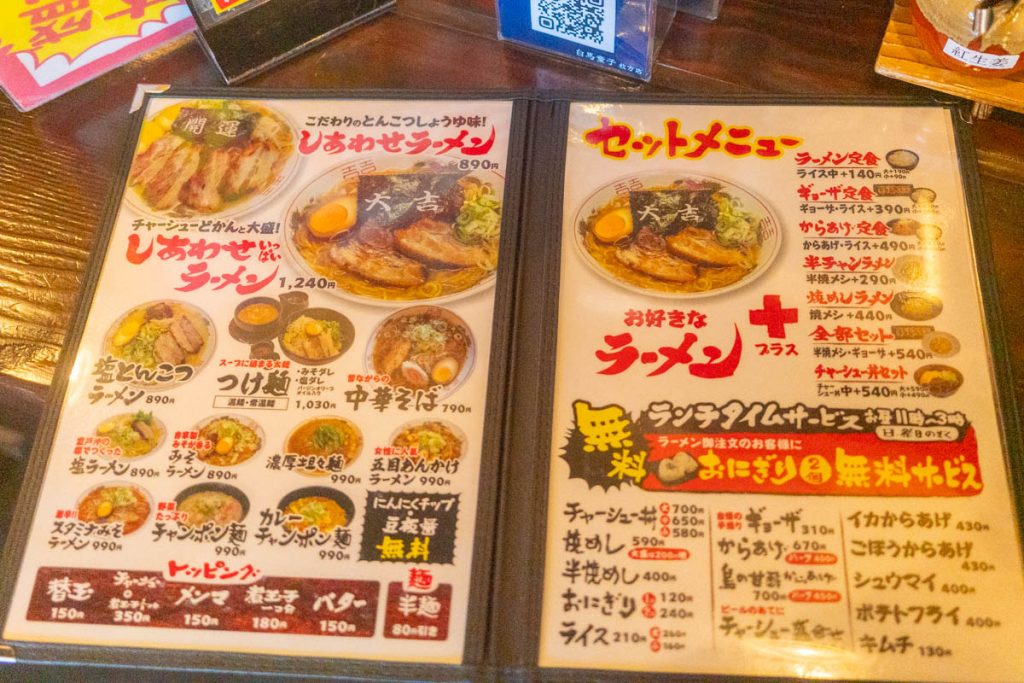 いろいろと綺麗になって、「ラーメンギョーザ」というワードが「しあわせラーメン」に変わっていますね。