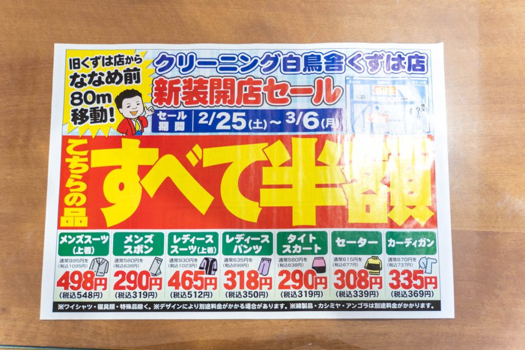 南楠葉のクリーニング店「白鳥舎 くずは店」が移転しています。