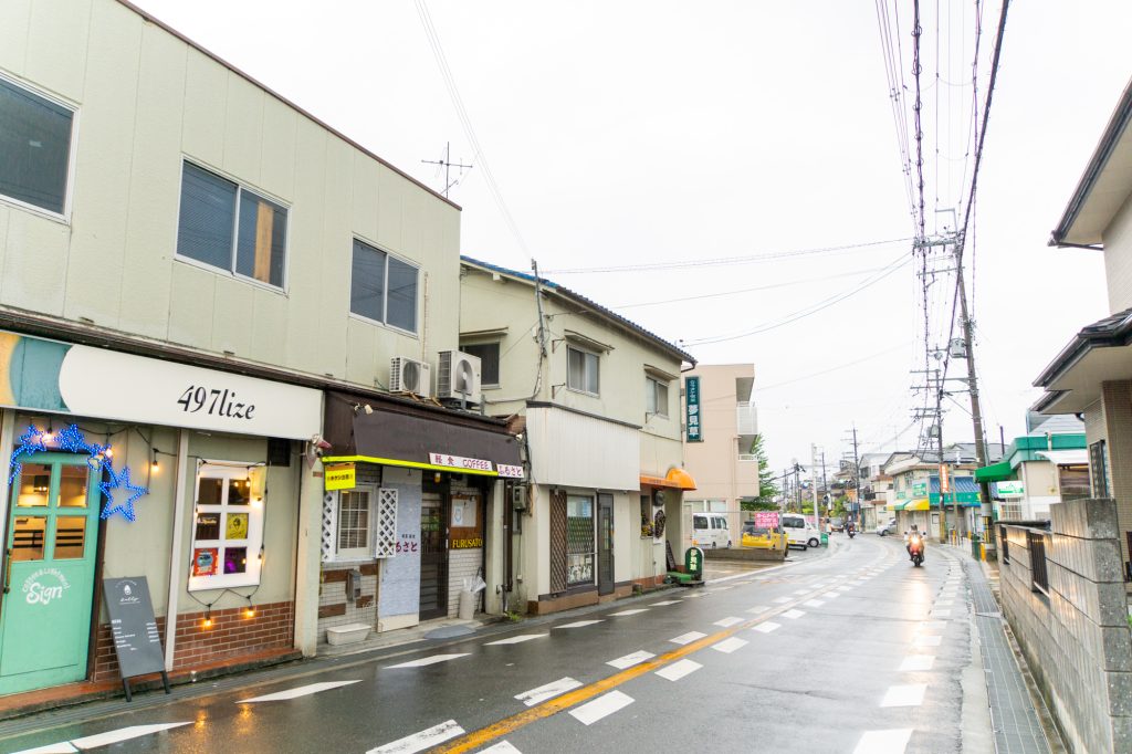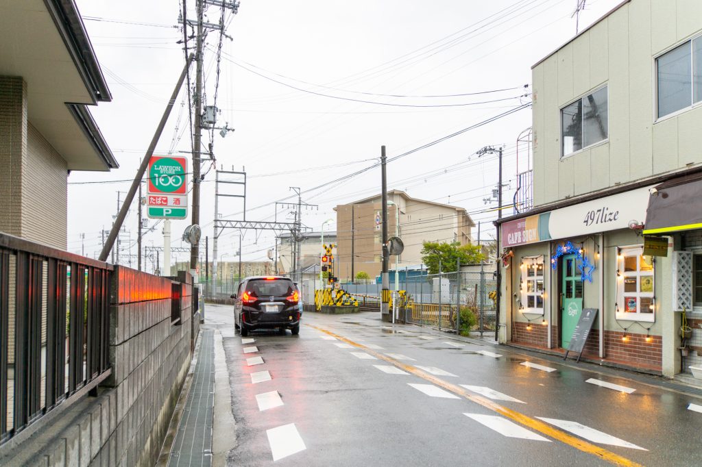 反対方向すぐ近くには100円ローソンが。ずっと進んでいくと府道18号線にでます。