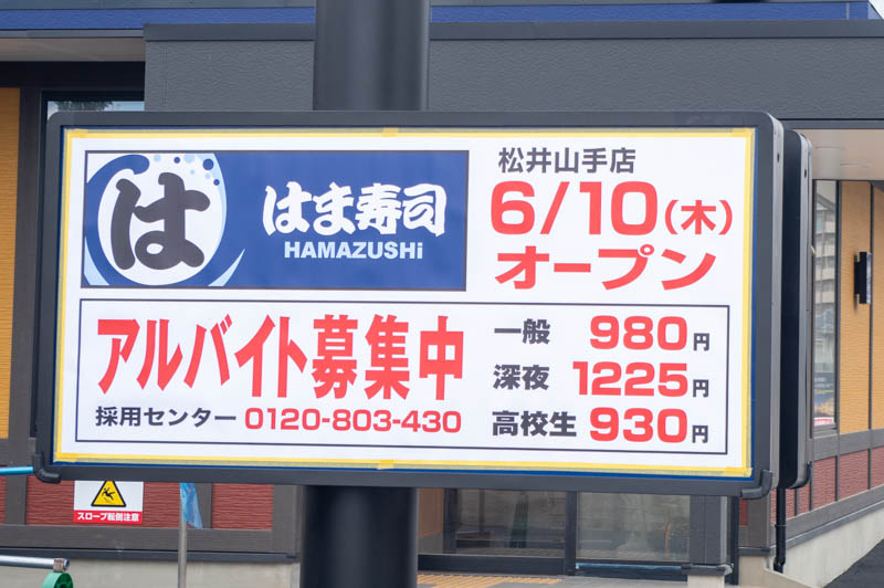 松井山手に作っている回転寿司店「はま寿司 松井山手店」のオープン日は6月10日のようです。